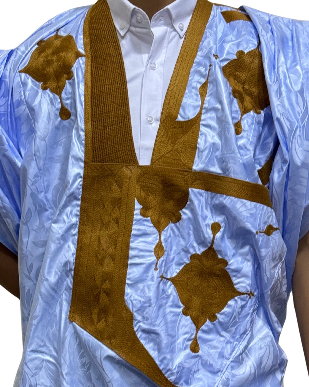 دراعة رجالية أنيقة بمقاس8م مرفقة مع بانتلوه بطول 96 سم، مصنوعة من قماش خنط أزبي الاخضر الأصلي عالي الجودة، المعروف بمظهره الفخم. تمت خياطتها بخياطة الداومة الكج ، بلمسة عصرية بارزة مع الحفاظ على الأصالة.
