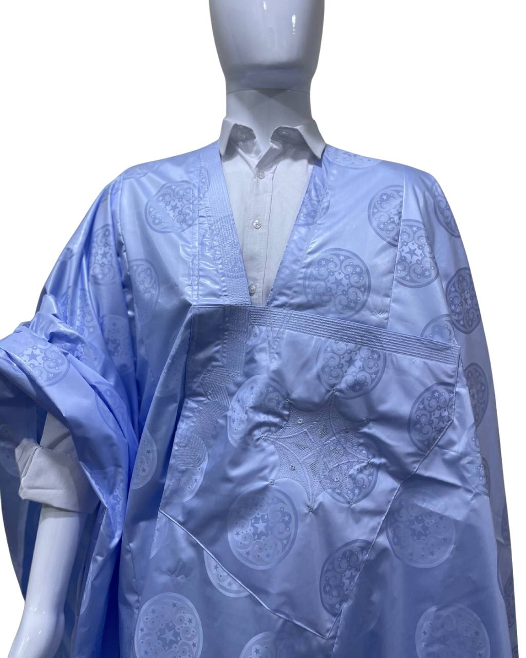 دراعة رجالية أنيقة بمقاس 8م مرفقة مع بانتلوه بطول 97 سم، مصنوعة من قماش خنط جزنير الأصلي عالي الجودة، المعروف بمظهره الفخم.