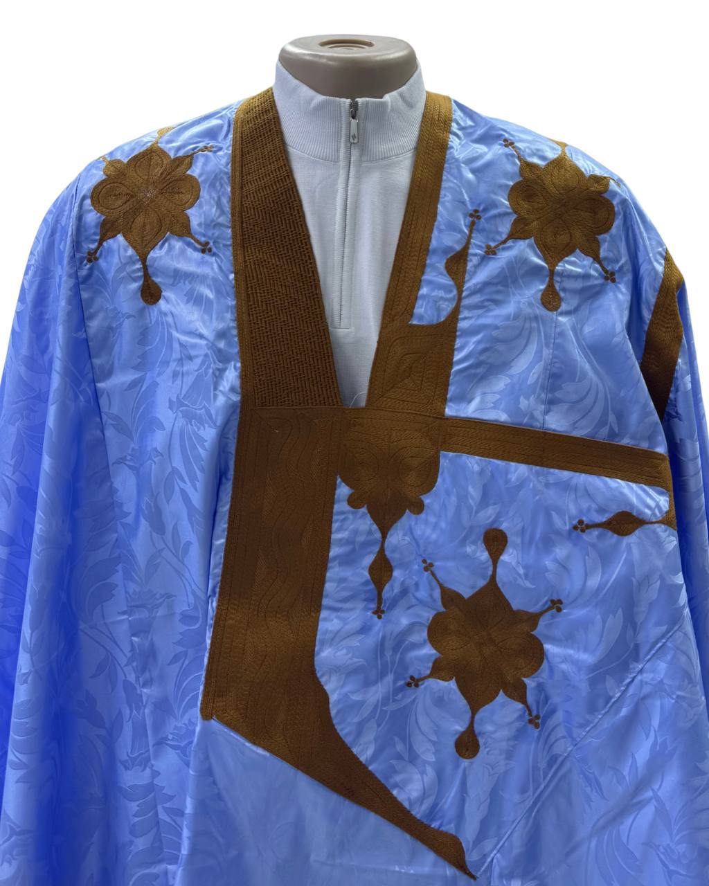 دراعة رجالية أنيقة بمقاس8م مرفقة مع بانتلوه بطول 96 سم، مصنوعة من قماش خنط أزبي الاخضر  الأصلي عالي الجودة، المعروف بمظهره الفخم. تمت خياطتها بخياطة الداومة الكج  ، بلمسة عصرية بارزة مع الحفاظ على الأصالة.