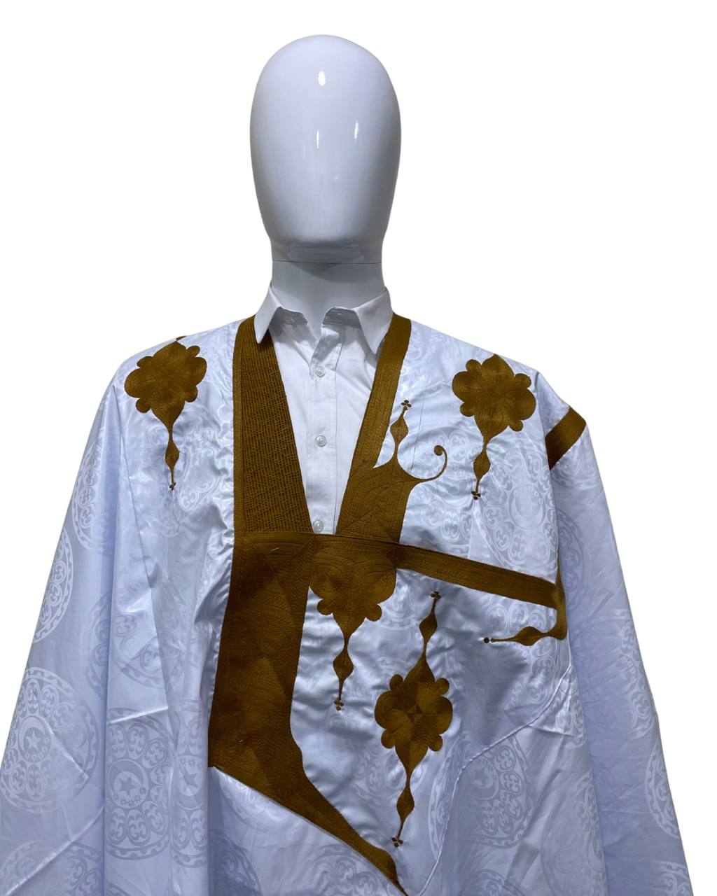 Une élégante djellaba pour homme en taille 8M accompagnée d'un pantalon, fabriquée en tissu khent azbi blanc original de haute qualité, connu pour son apparence luxueuse. Elle est cousue avec une couture de qualité, avec une touche moderne marquée tout en préservant l'authenticité.
