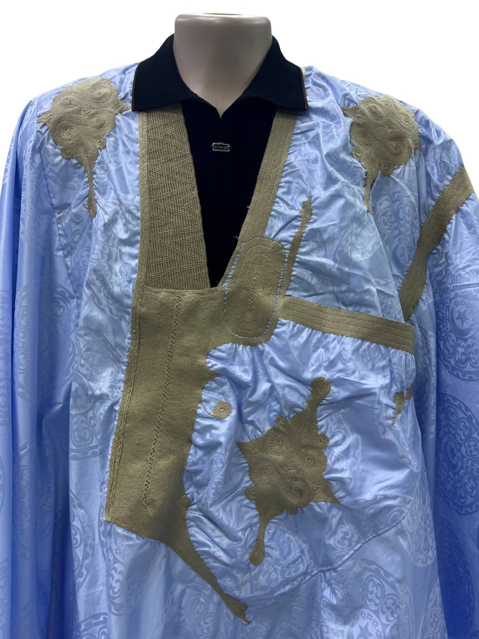 Azbi bleu ciel – boubou 8m avec pantalon, couture faite à la main 1173