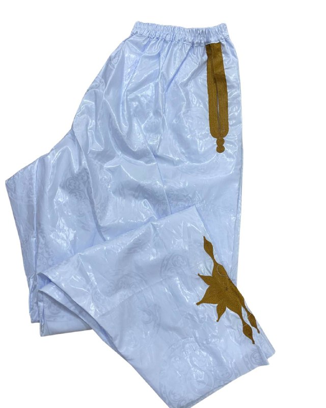 دراعة رجالية أنيقة بمقاس8م مرفقة مع بانتلوه ، مصنوعة من قماش خنط أزبي الابيض الأصلي عالي الجودة، المعروف بمظهره الفخم. تمت خياطتها بخياطة الداومة الكج ، بلمسة عصرية بارزة مع الحفاظ على الأصالة.