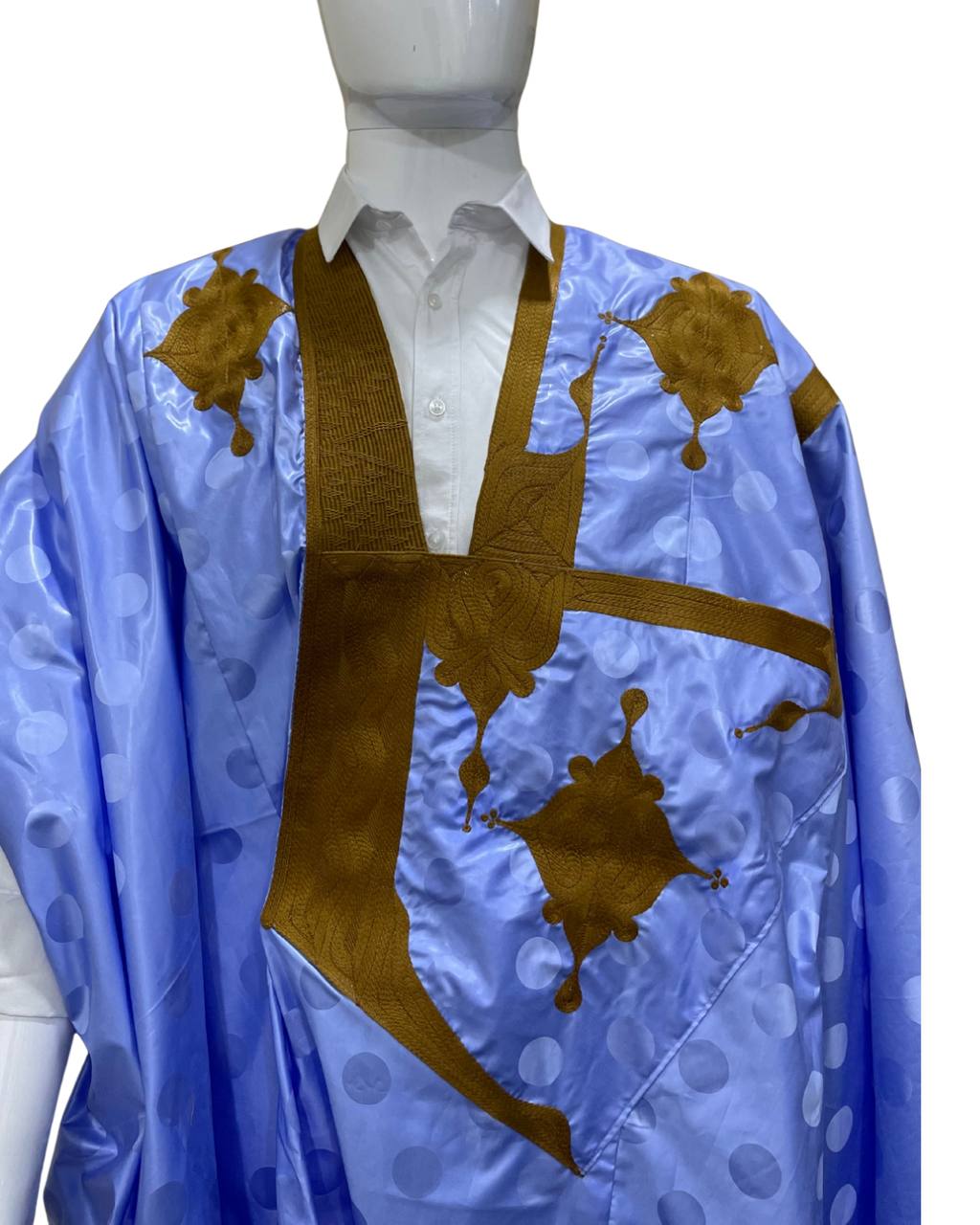 دراعة رجالية أنيقة بمقاس8م مرفقة مع بانتلوه بطول 96 سم، مصنوعة من قماش خنط أزبي الاخضر الأصلي عالي الجودة، المعروف بمظهره الفخم. تمت خياطتها بخياطة الداومة الكج ، بلمسة عصرية بارزة مع الحفاظ على الأصالة.